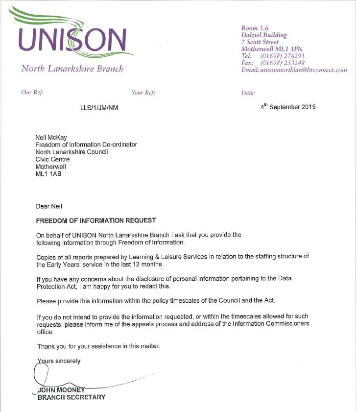 Please see copy of a Freedom of Information request that has been submitted by UNISON today.